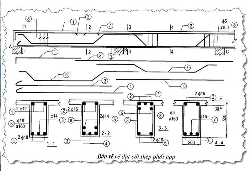 - Ngoài mặt chính và các mặt cắt còn cần vẽ thêm các hình triển khai các thanh cốt thép để có thể dễ giải thích và dễ thấy hơn.