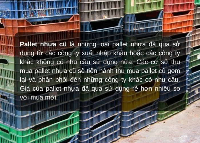 Ngoài ra, pallet cũ còn giúp doanh nghiệp tiết kiệm chi phí đáng kể vì giá thành thấp hơn pallet mới mà vẫn đảm bảo chất lượng và độ bền. Pallet nhựa cũ có thể tái sử dụng nhiều lần mà không mất đi tính năng, rất phù hợp cho các ngành logistics, kho bãi hay xây dựng. Khi được xử lý đúng cách, pallet cũ còn đảm bảo tiêu chuẩn về kích thước, chất lượng và vệ sinh, giúp bảo vệ hàng hóa và môi trường cùng lúc.